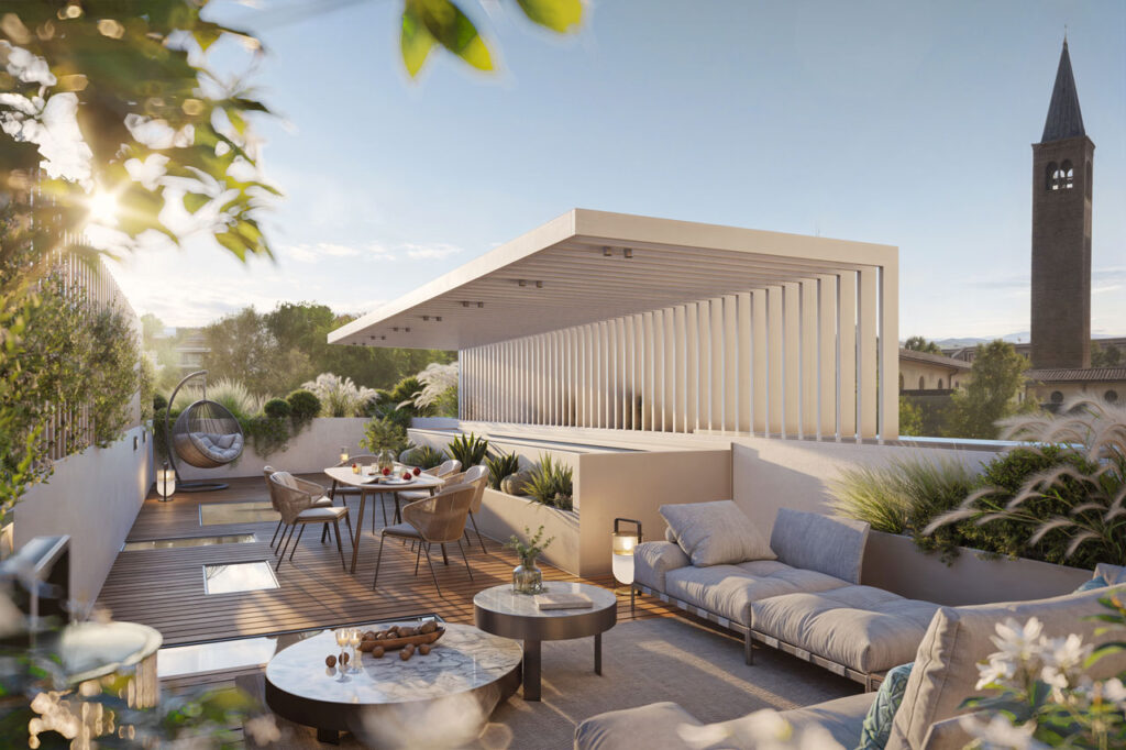 Gli esterni sono un’estensione naturale della casa, progettati per momenti di pace e bellezza. I terrazzi raffinati e spazi all’aperto, puoi goderti la città da una prospettiva esclusiva, in totale armonia con l’ambiente che ti circonda.